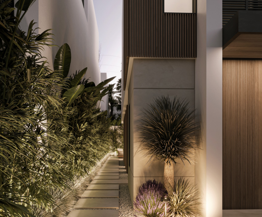 تتجسد الاناقة والتفرد في كل زاوية من هذه الفلل. تسمح نوافذ الزجاج الكبيرة بدخول ضوء الشمس بشكل ساحر إلى غرفة المعيشة ذات التصميم المفتوح، مما يخلق جوا دافئا ومريحا ويجعلها المكان المثالي للعيش.