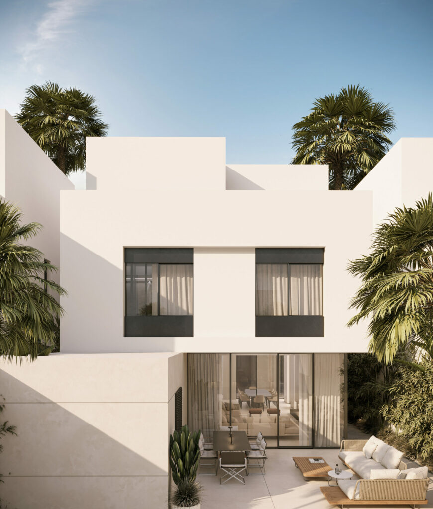 يتخلل كل فيلا فناء خارجي على شكل حديقة داخلية يتوسطها شجرة تضفي طابع مشرق وتدعو روعة الطبيعة ليتحول إلى رفيق دائم في حياتك اليومية